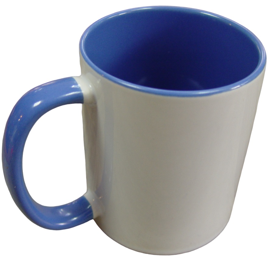 | Кружка 300мл белая с кофейной внутренней поверхностью и с цветной ручкой