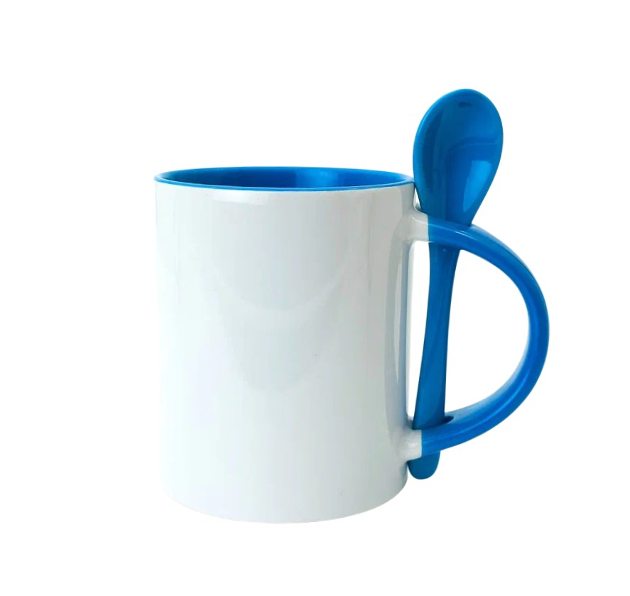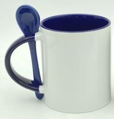 | Кружка 300мл белая с ложкой СИНЯЯ