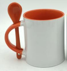 | Кружка 300мл белая с ложкой, прямая, Красная