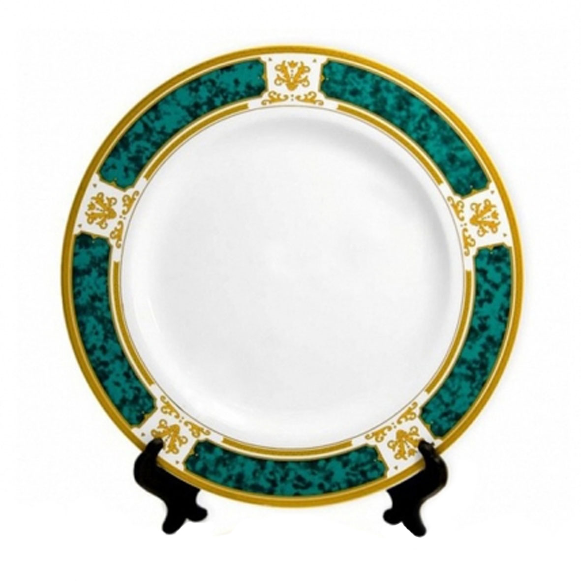 | Тарелка 20 см белая каемка "зеленый мрамор с золотом" (c подставкой)